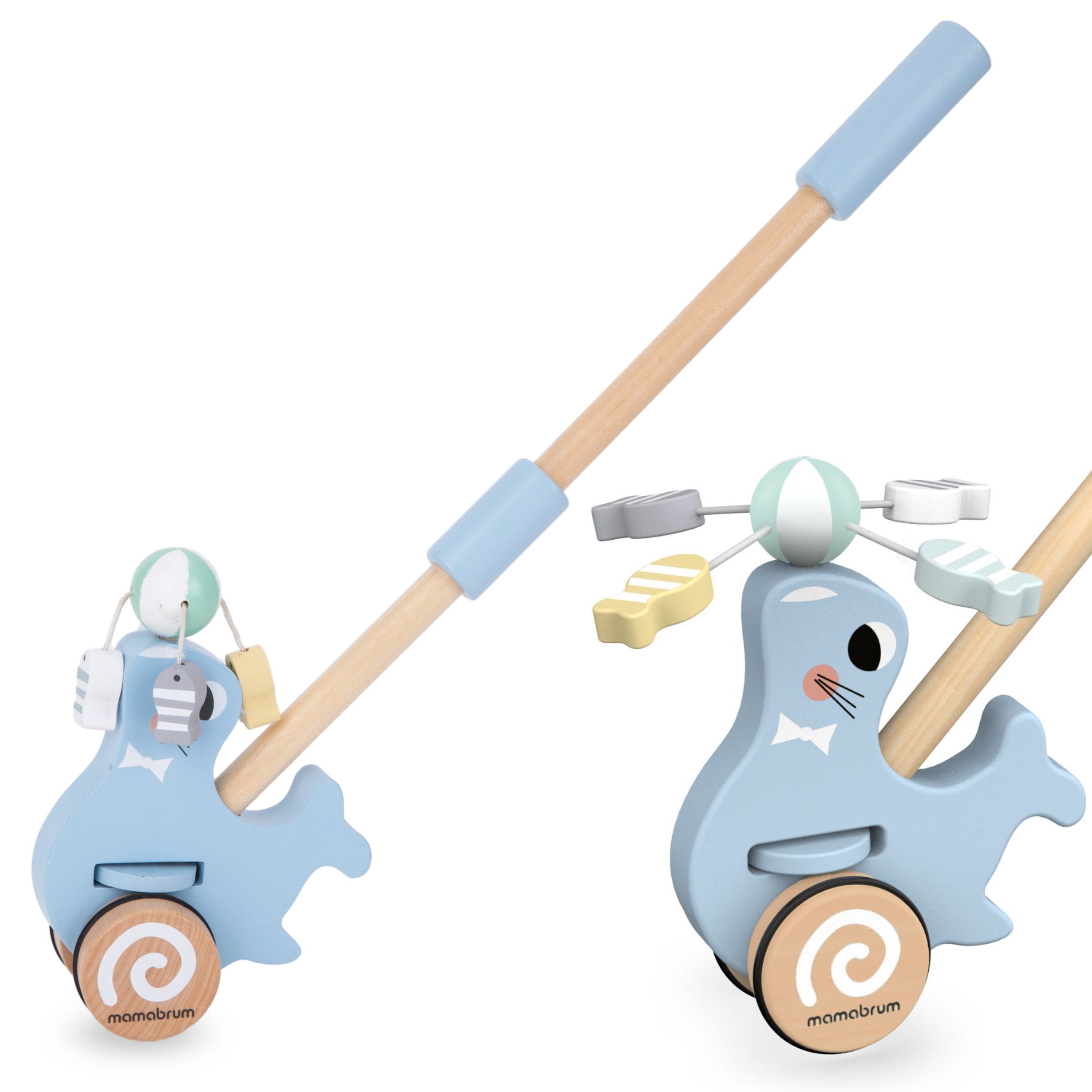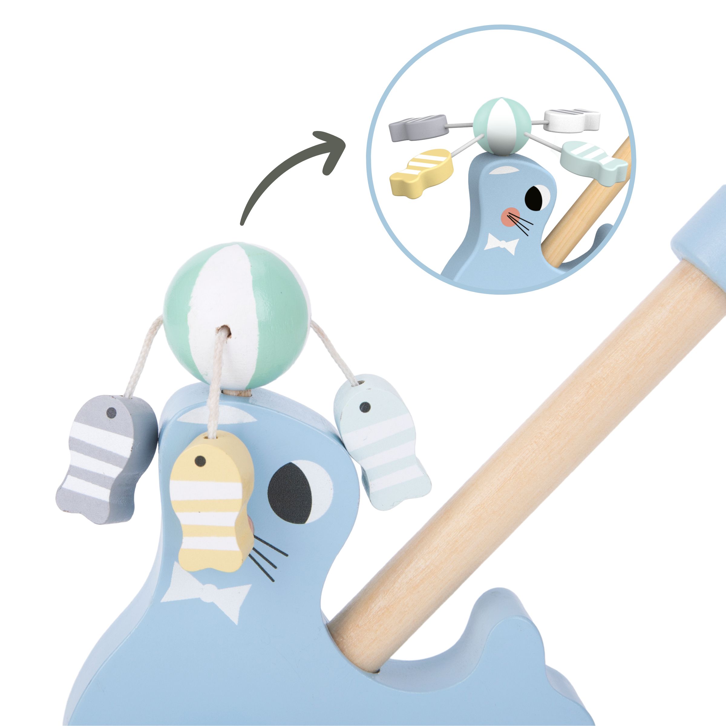 Dessutom kommer åsynen av en lekfull säl omedelbart att lyfta ditt barns humör, stimulera deras fantasi och uppmuntra dem att vara aktiva. Tryckaren i trä finns i en mjuk blå nyans.
