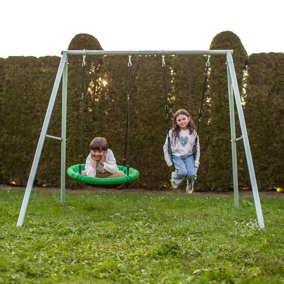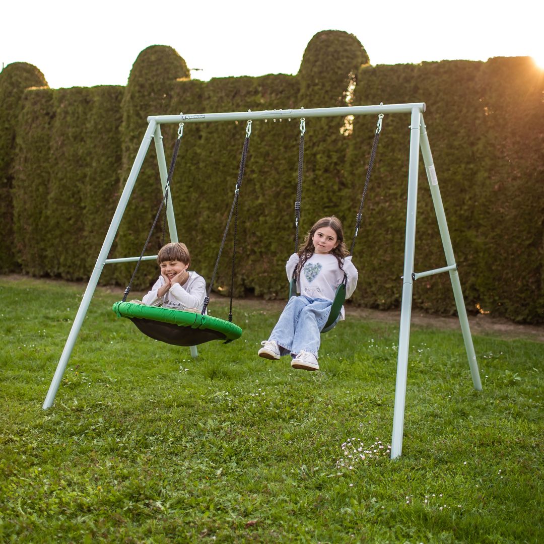 Gungan lockar uppmärksamhet med sin moderna design och gör trädgården ännu mer attraktiv för barn. Tack vare möjligheten att installera både ett storkbo och en bekväm sits kan barn gunga samtidigt och delta i gemensamt roligt. Gungan har en extremt stabil och hållbar struktur , så du behöver inte oroa dig för dina barns säkerhet när du gungar.