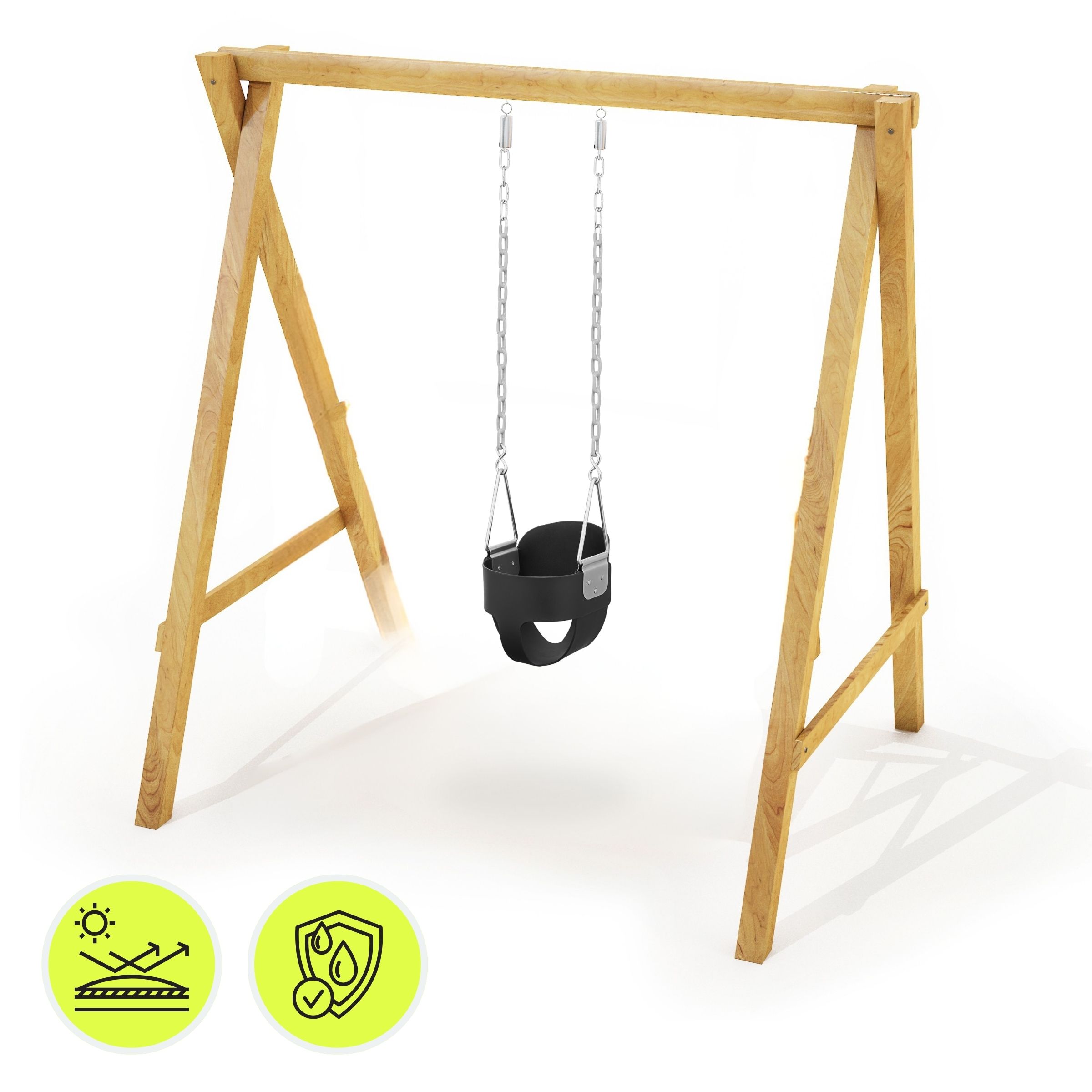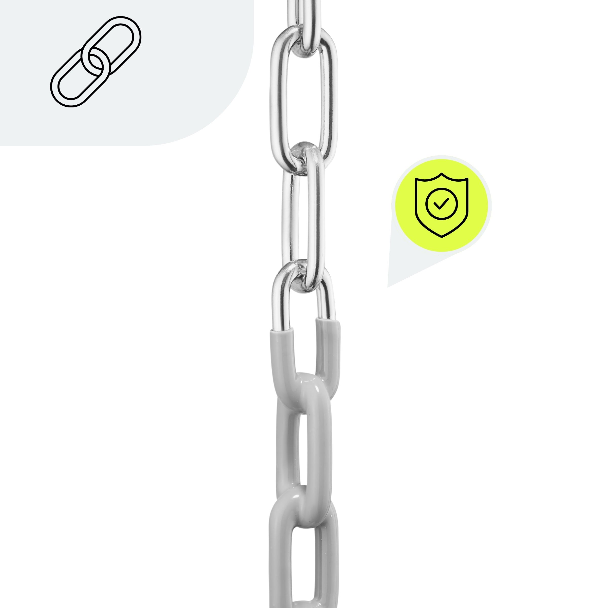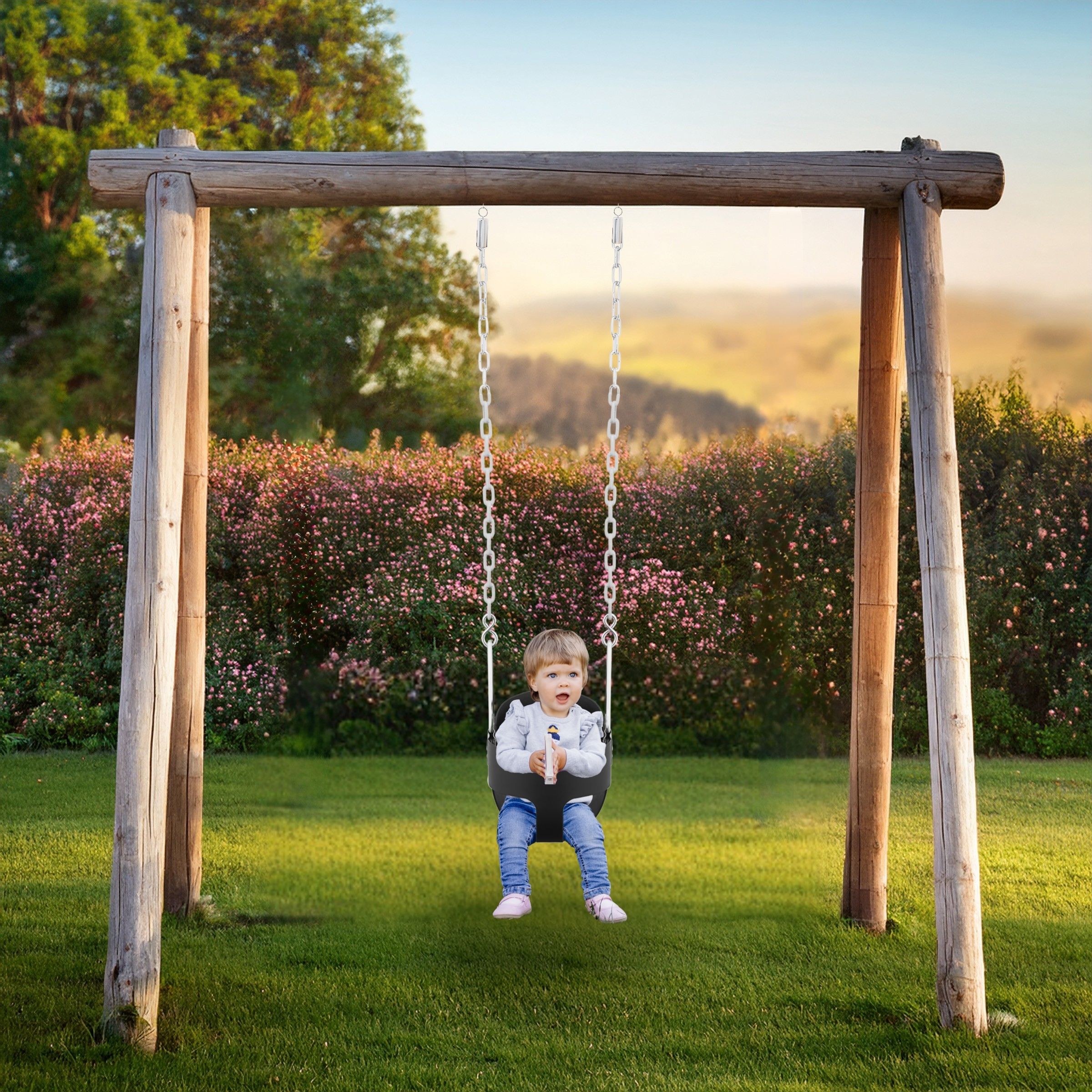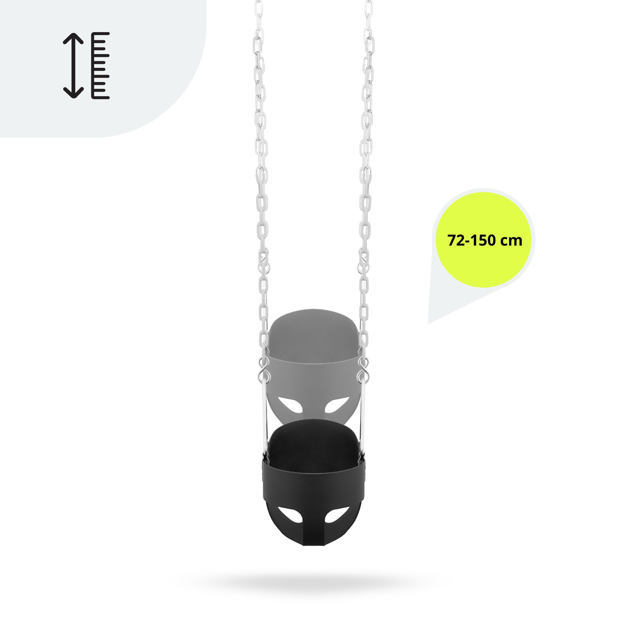 Med sina robusta kedjor, karbinhakar och sitthink säkerställer gungan att ditt barn inte bara är bekvämt utan också säkert under utomhusaktiviteter. Det höga ryggstödet gör att du kan inta en bekväm gungställning och sitsens utformning förhindrar att ditt barn lutar sig framåt, bakåt eller i sidled.