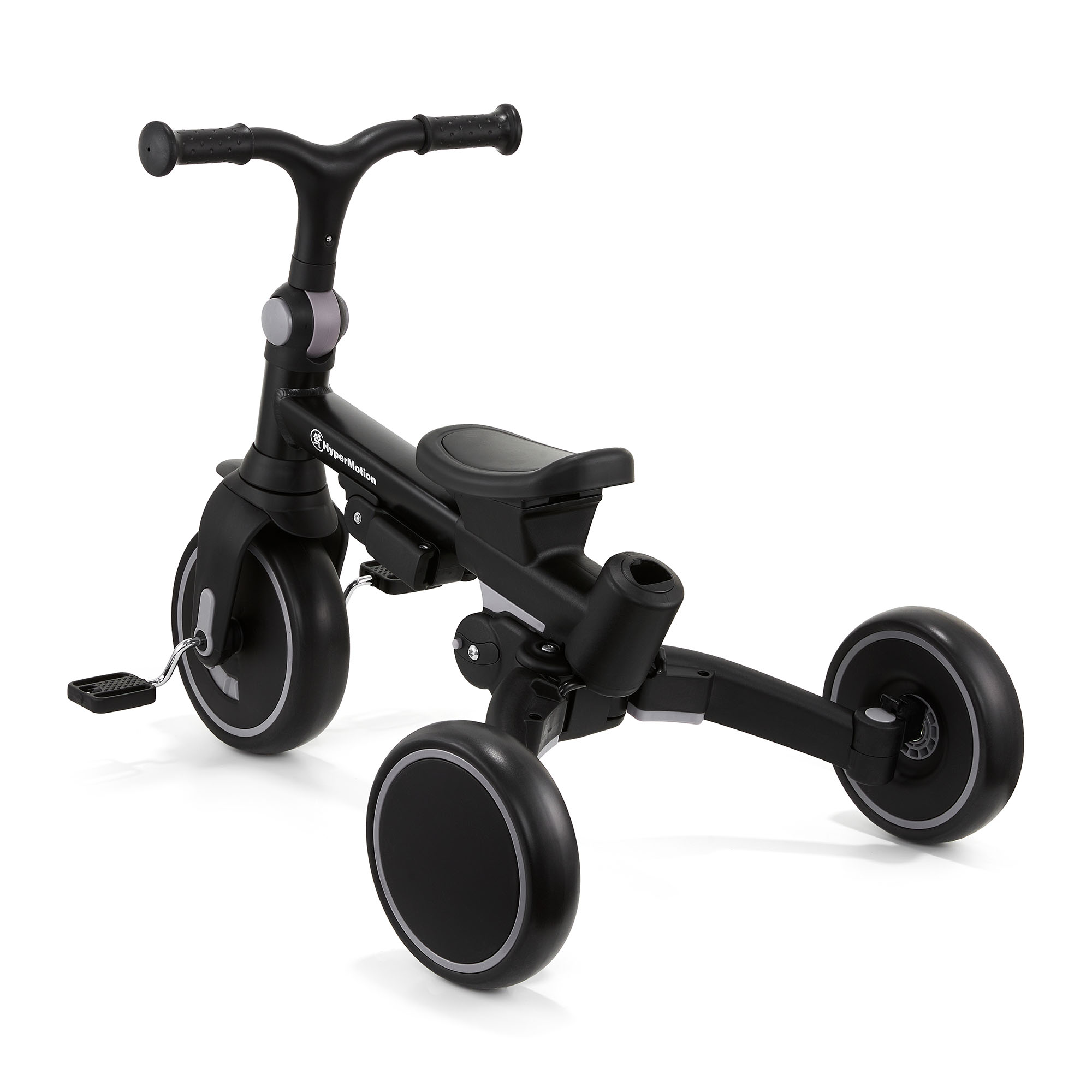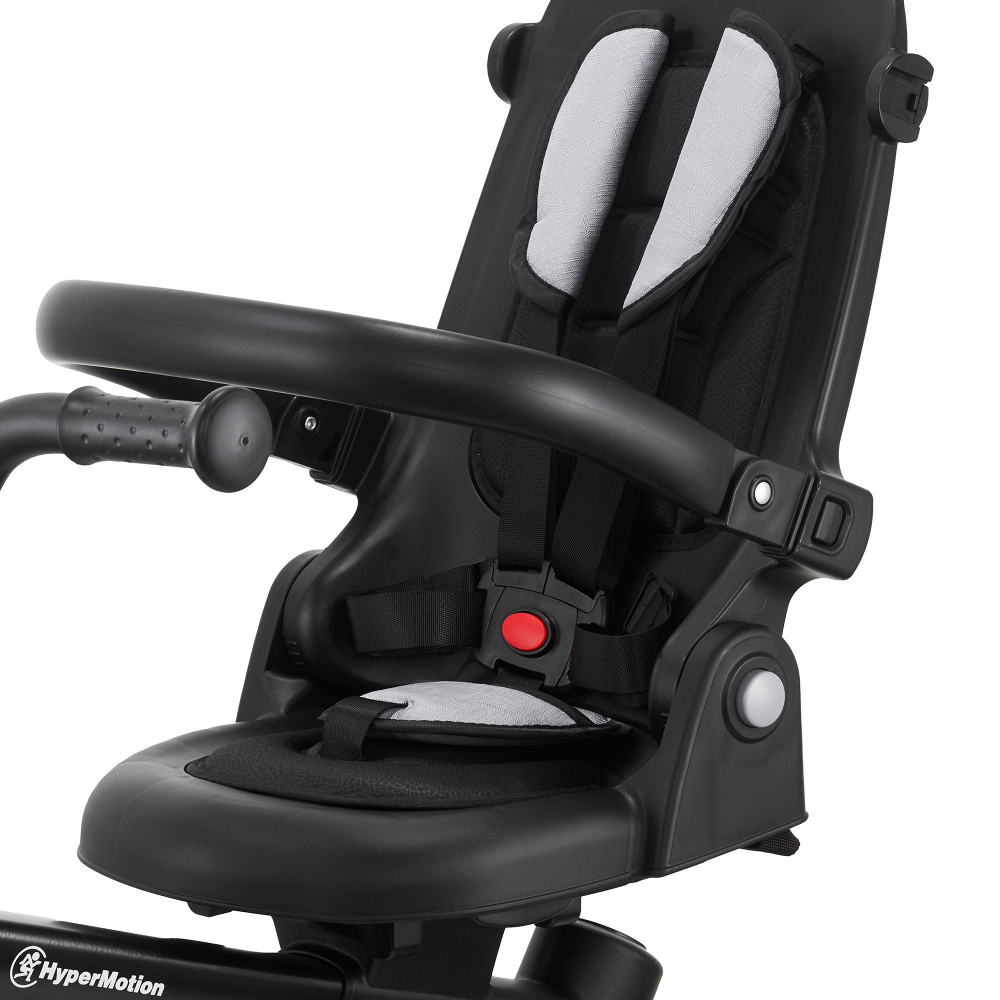 Trehjulingen kan enkelt anpassas till ditt barns aktuella förmågor och behov. För de allra minsta är det en bra idé att vända sätet mot föräldrarna, montera en säkerhetsbygel, sufflett, fotstöd och en bygel som gör att föräldrarna kan driva fordonet. När barnet blir äldre kan fotstöden fällas ned, pedalerna fästas, säkerhetsbältet och suffletten tas bort och sätet vändas. När barnet har lärt sig grunderna i cykling kan trehjulingen enkelt förvandlas till en terrängskoter. Alla ändringar kräver inga verktyg och går snabbt och enkelt att göra.