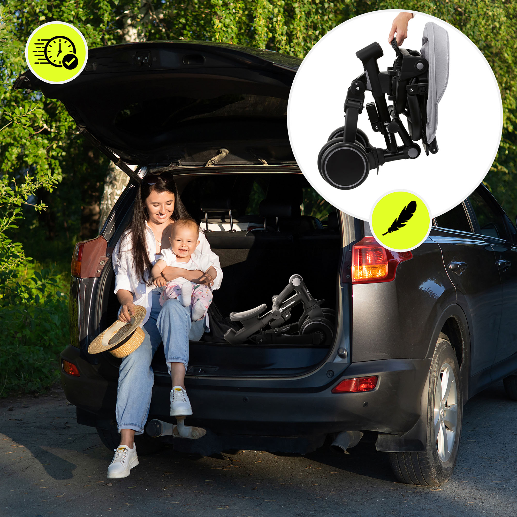 Dessutom har sitsen en justerbar lutning på ryggstödet, så att den kan placeras i en bekväm sittande eller halvt liggande position - perfekt för en tupplur medan du går.