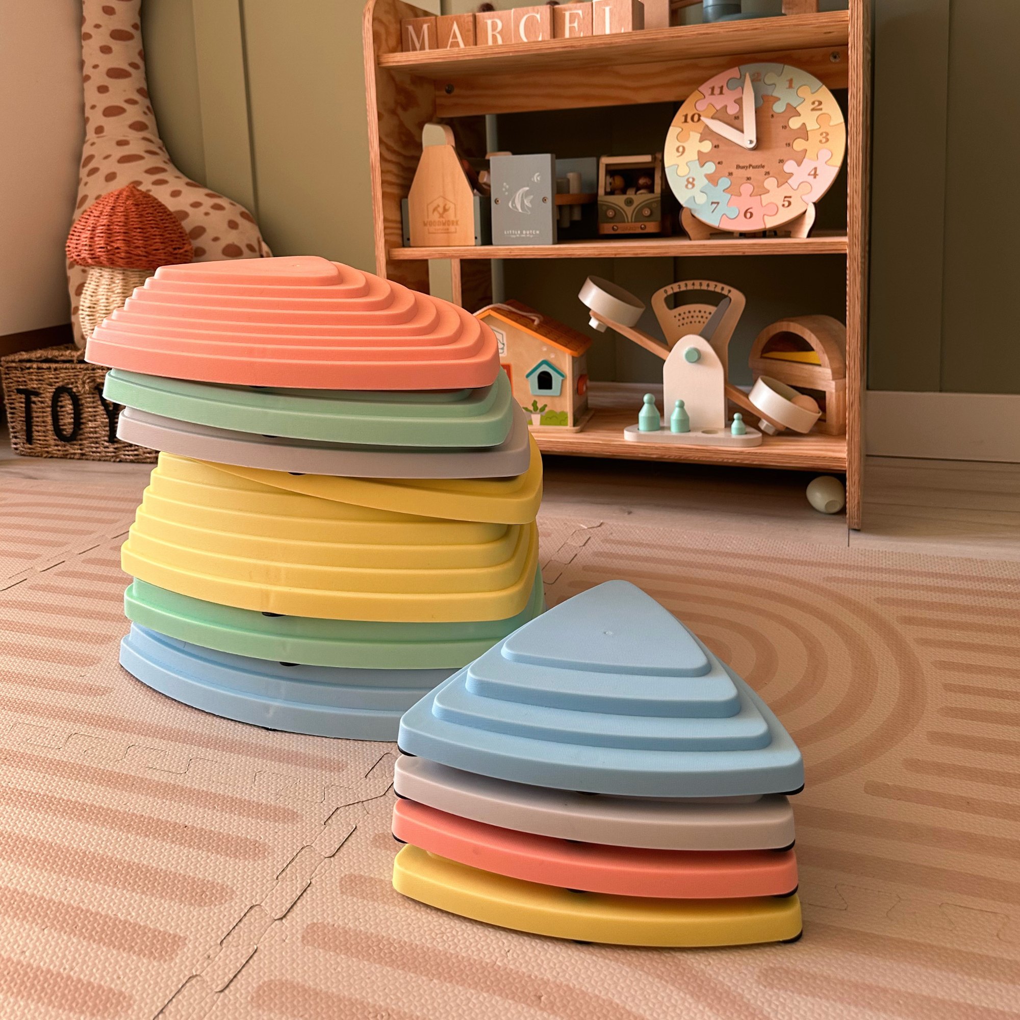 Uppsättningen med balansstenar finns i pastellfärger och är inte bara dekorativ i barnrummet, utan ger framför allt kreativ underhållning. Stenarna kan användas på många olika sätt, beroende på barnens aktuella behov och idéer. Balansstenarna stöder också småbarns motoriska utveckling och ger dem möjlighet att öva upp sitt balanssinne.