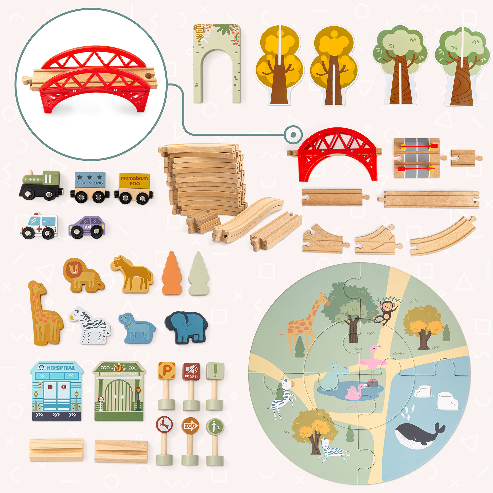 Trä ZOO-tåg – pussel, tåg, spår, djur, bro, barriär