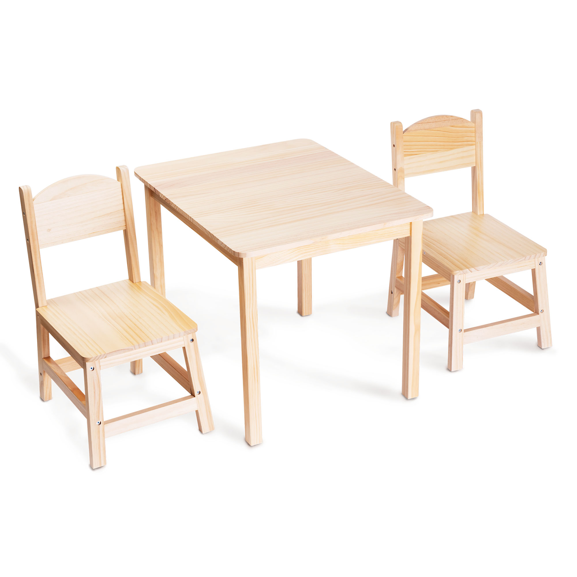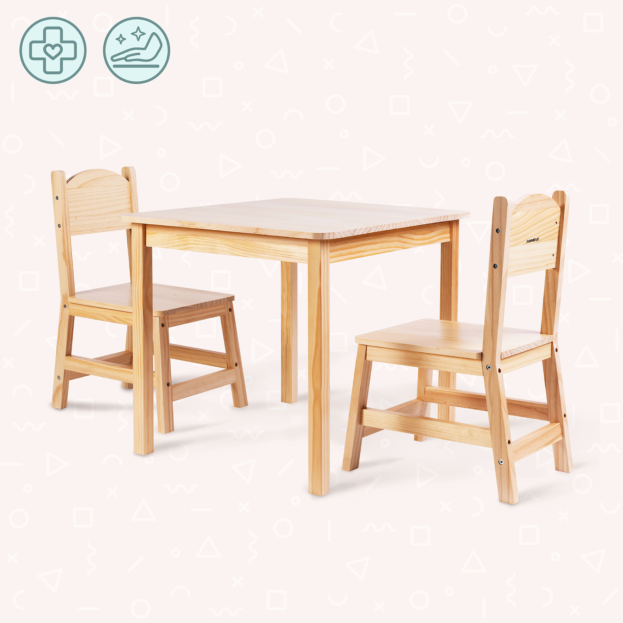 Ge ditt barn ett eget utrymme! – tryggt, bekvämt och fullt av möjligheter. Denna trämöbel med ett bord och två stolar skapar den perfekta platsen för att rita, lösa pussel, studera, äta måltider eller leka med syskon och vänner. Naturlig furu, en ergonomisk form och solid konstruktion gör dessa möbler till ett perfekt tillskott till ett barnrum, vardagsrum eller lekplats.
