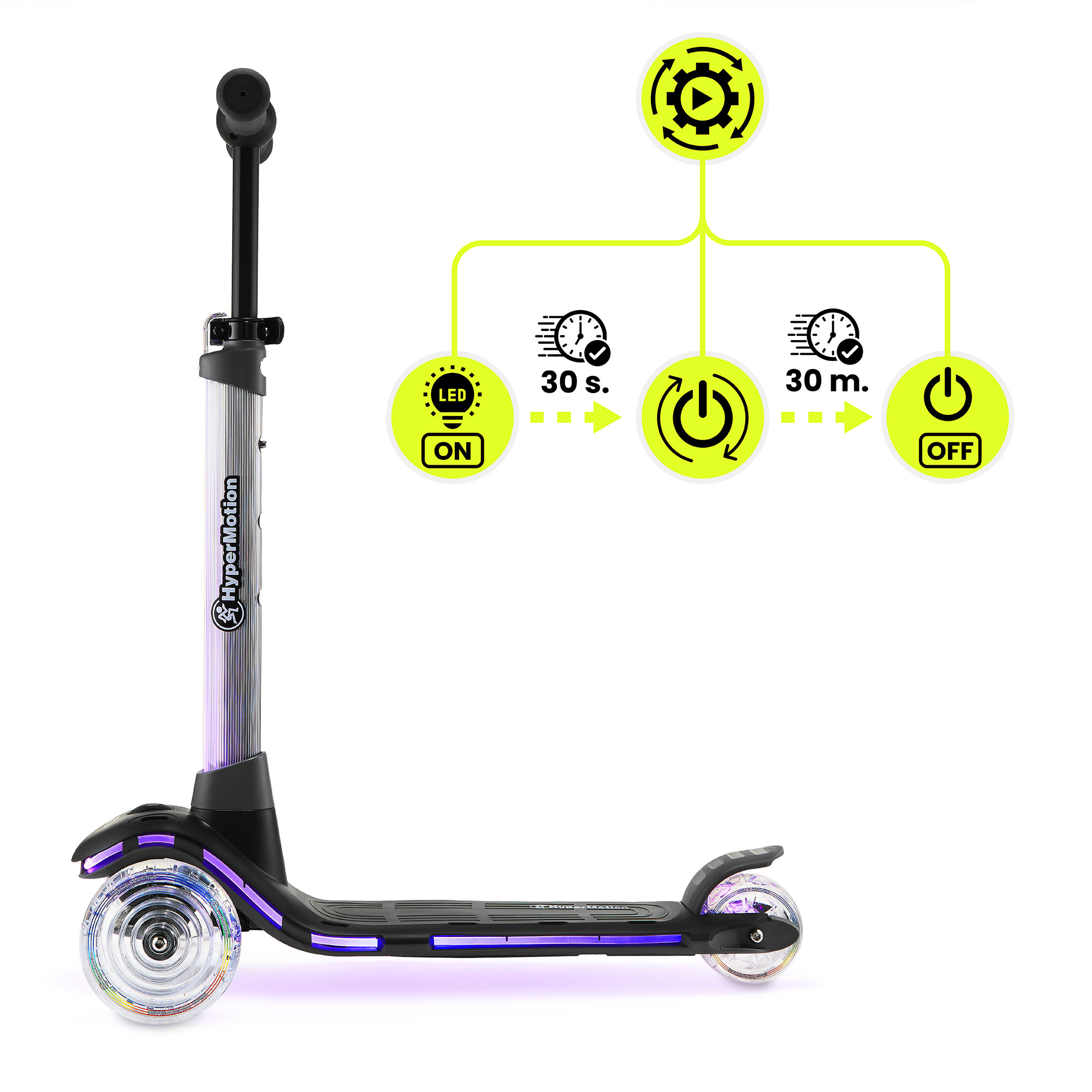 HyperMotion BECKY trehjulig balansscooter - RGB LED-belysning, svart