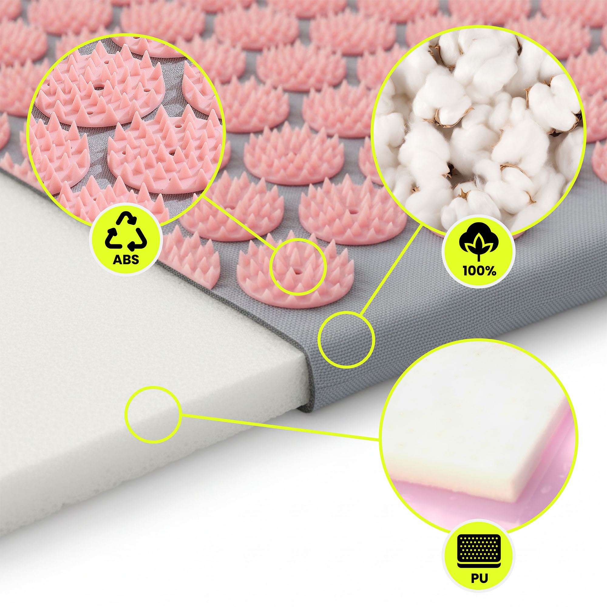 - Premiumkvalitet – 100 % bomull, flexibelt skum och extremt slitstarka ABS-spikar garanterar tillförlitlighet och exceptionell komfort i många år framöver.
