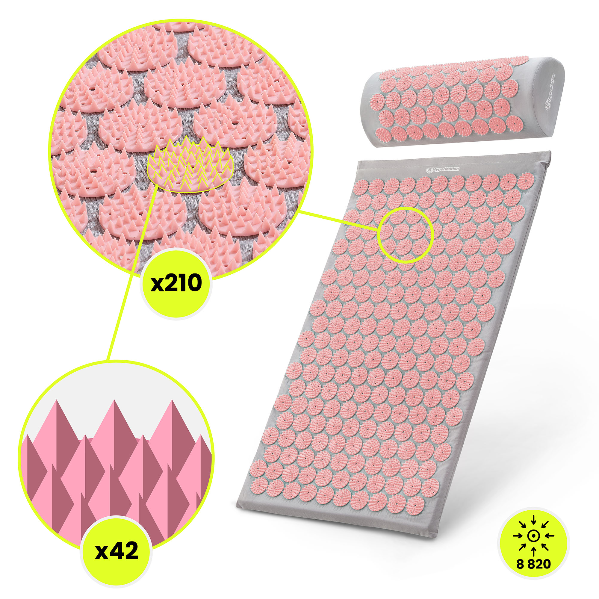 HyperMotion akupressurmatta kombinerar traditionella kinesiska akupressurtekniker med modern design och högkvalitativt hantverk. Utformad för avslappning och regenerering, hjälper den till att lugna kroppen, varva ner efter en hektisk dag och återfå en känsla av komfort. Det är en komplett avslappningszon – mattan, den ergonomiska kudden och det praktiska överdraget skapar en perfekt uppsättning för avslappningsritualer hemma och en daglig återställning.