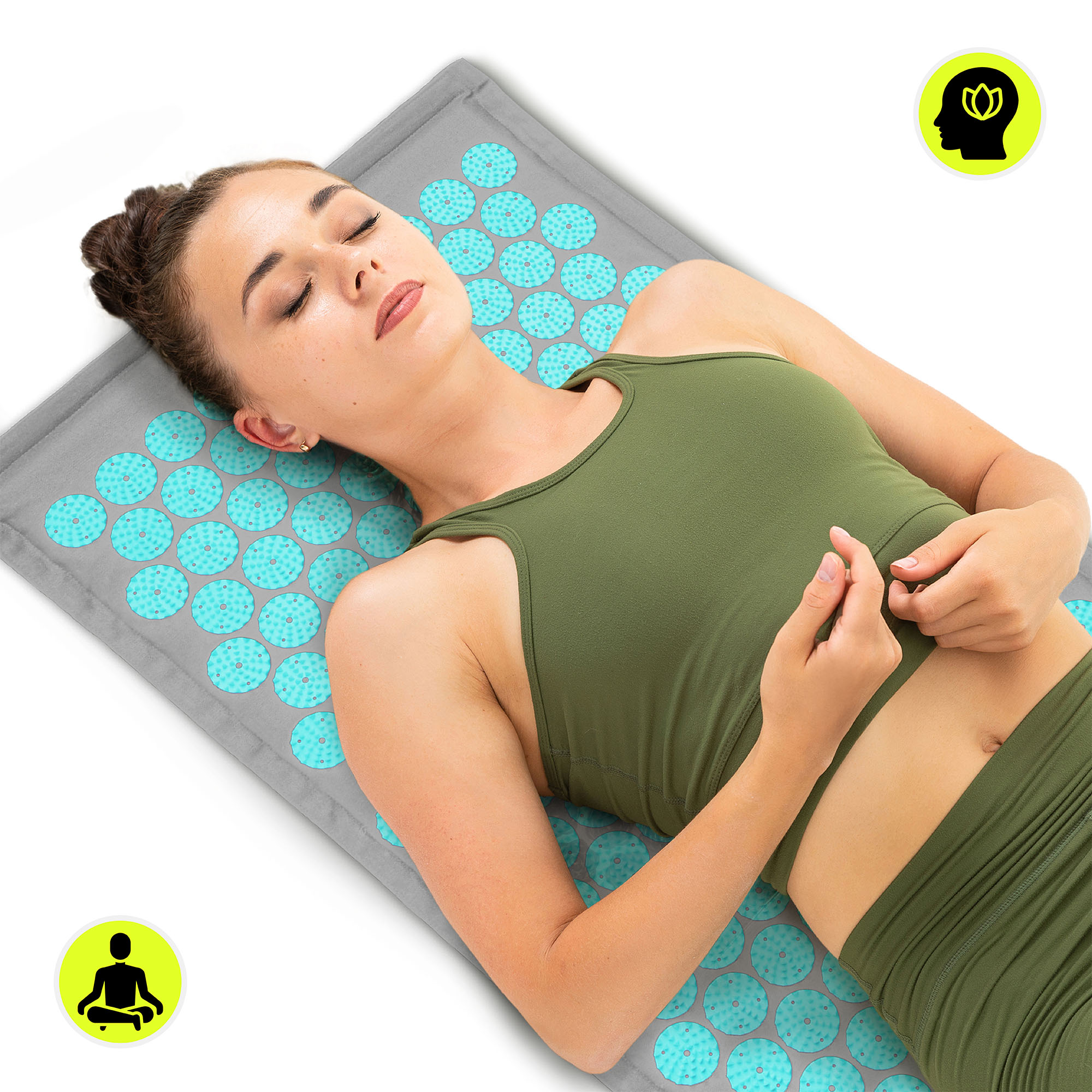 ECO Linne Akupressurmatta med Kokosfiber och Bovetekudde – 68 cm HyperMotion Grå-Mint