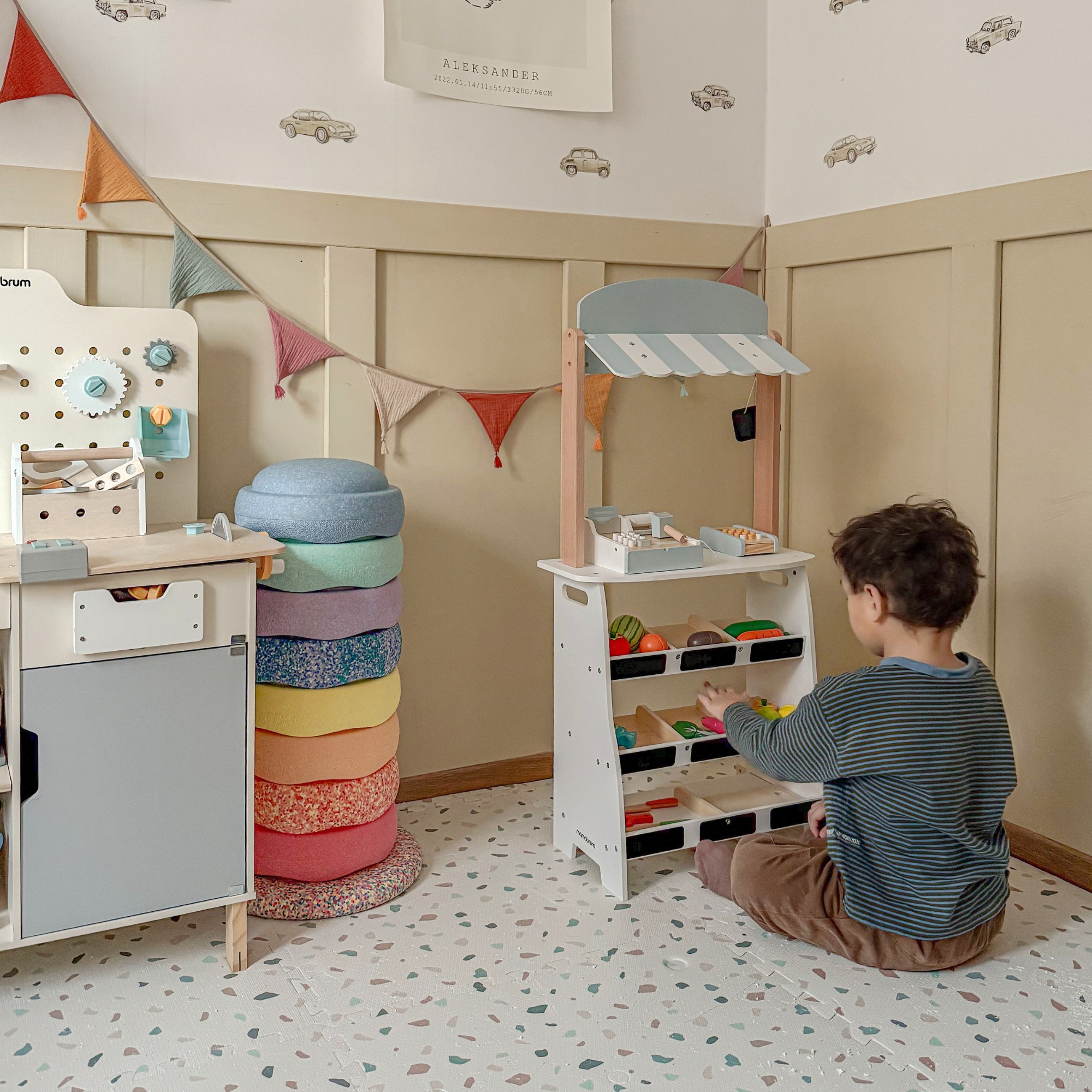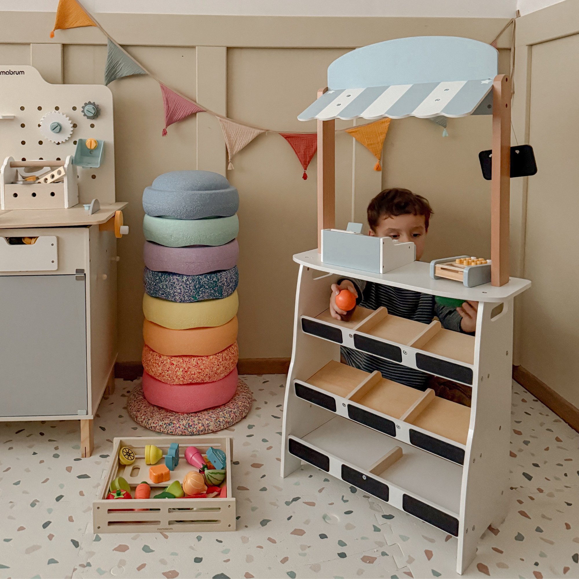 Vid ståndet på marknadsdagen är snacket så stort att det finns en ny försäljare som har ett bra lager av grönsaker! Här är en leksak som lär ditt barn inte bara om handel, utan också om hälsosam mat.