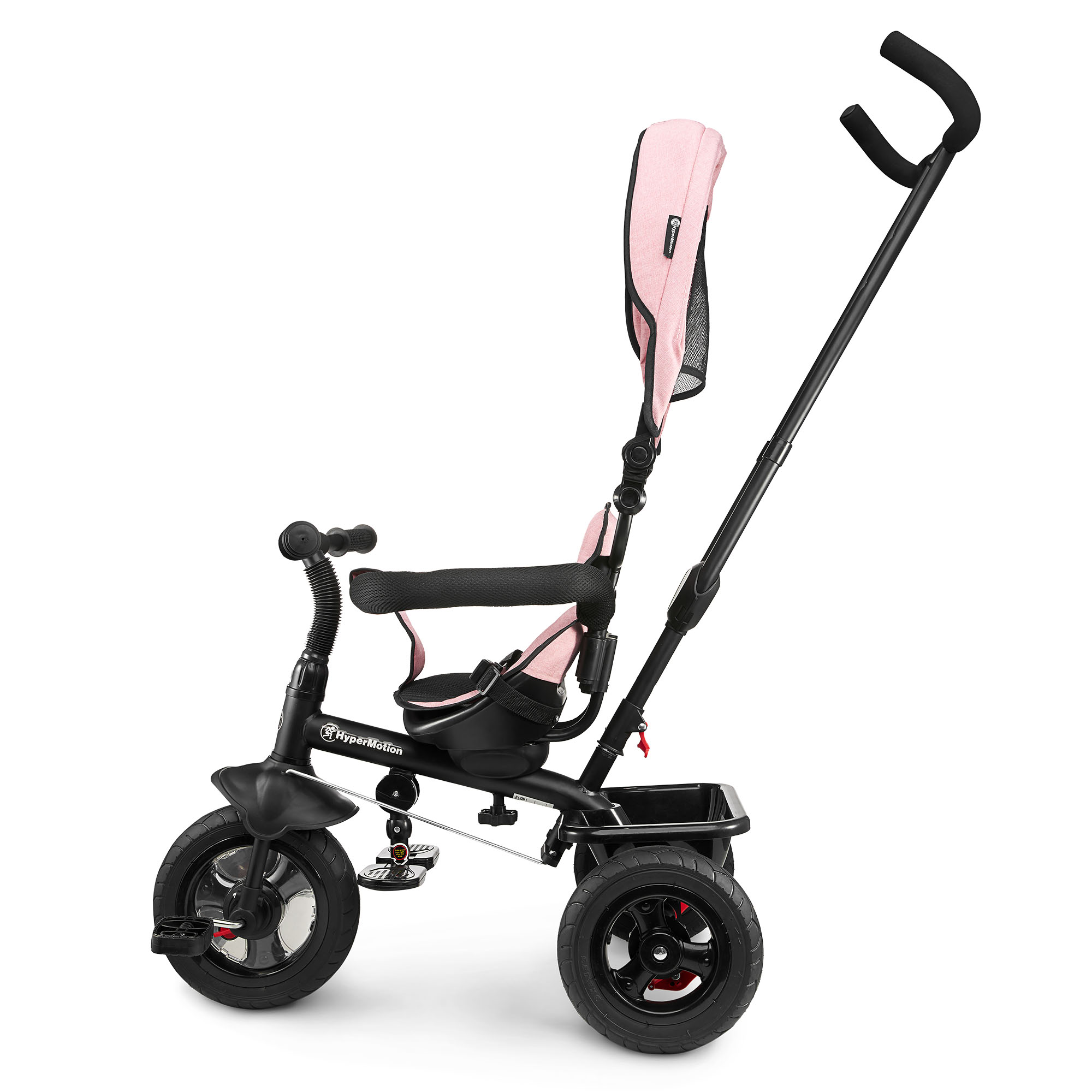 Trehjuling för barn 1-4 år - TOBI FREY - rosa färg - svängbar - pumpade hjul + tryckare