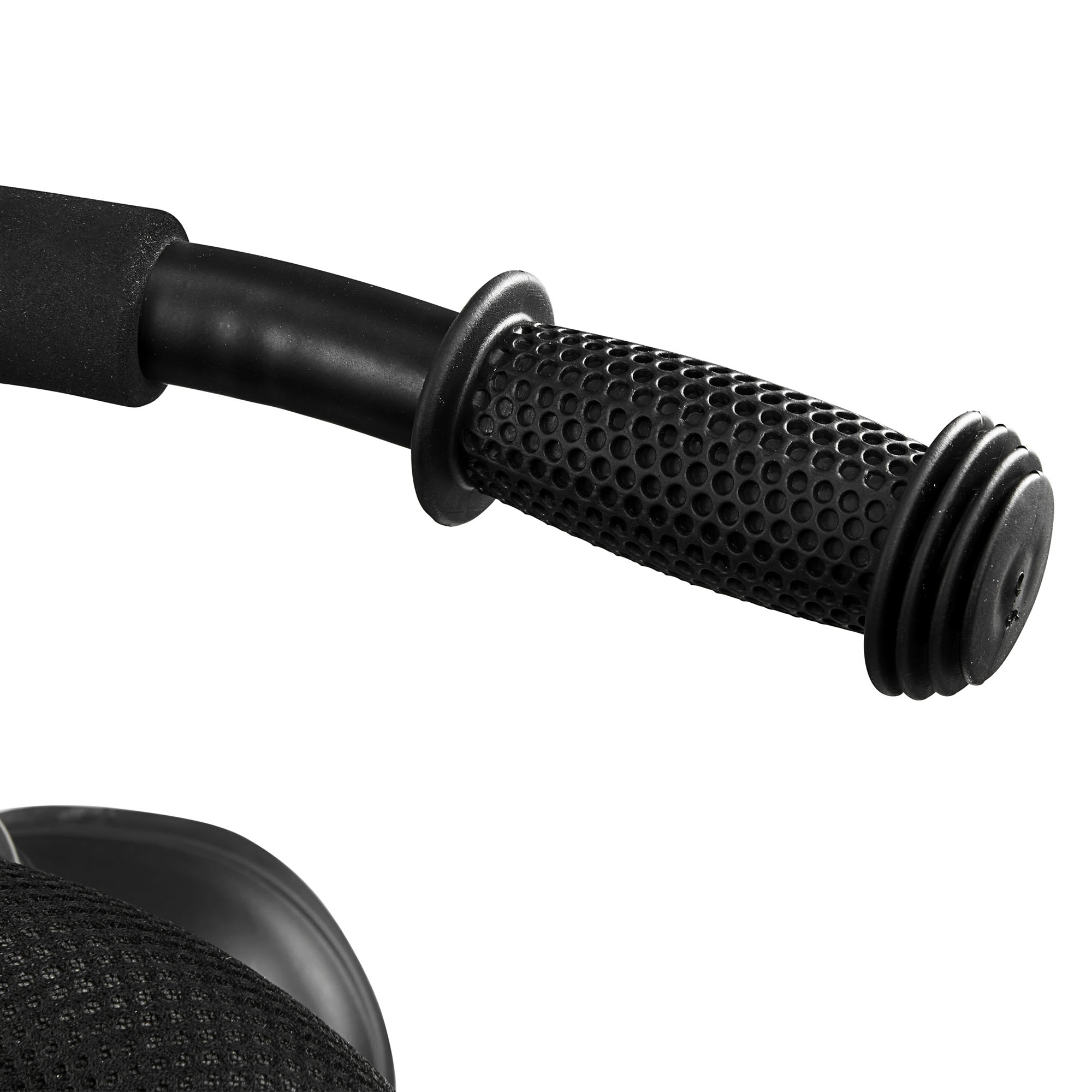 Många flikar på handtagen förbättrar handgreppet, och de breda, dragspelsformade ändarna på handtagen dämpar ytterligare stötarna och skyddar småbarnet från att skada sig.