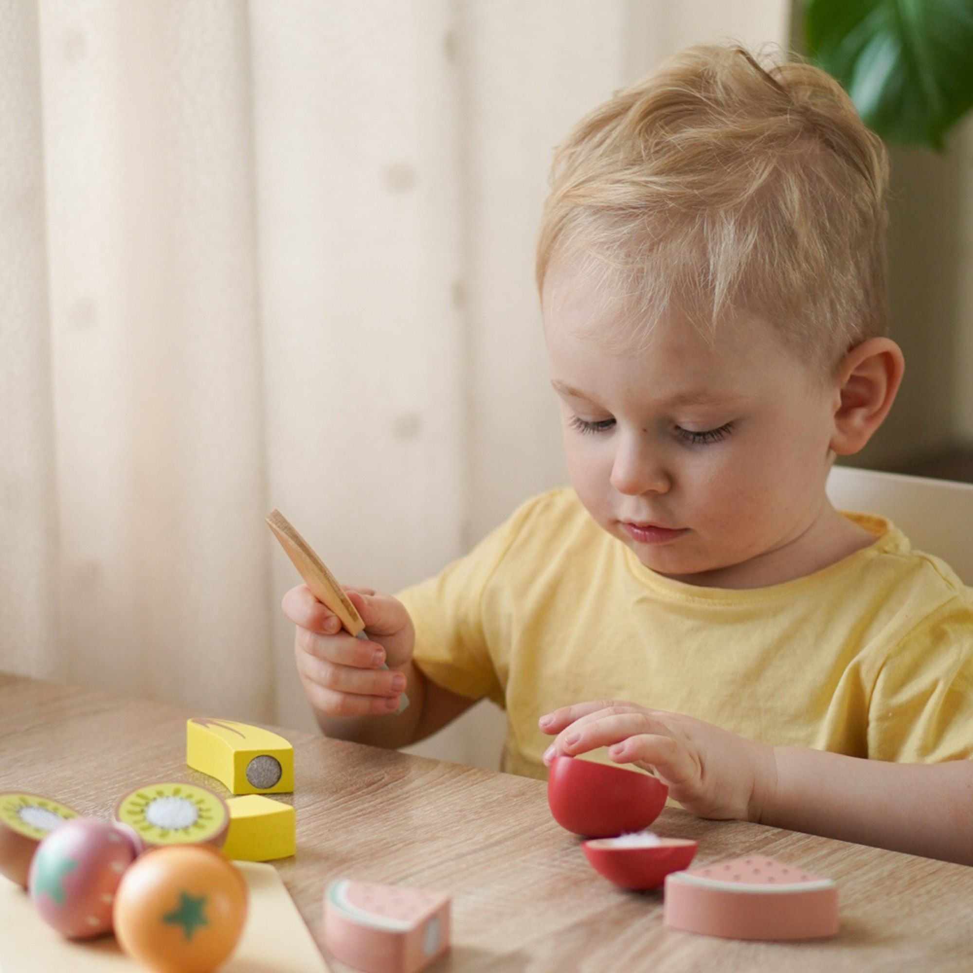 Träfrukterna att skära i är perfekta som gåva till småbarn och ger dem många timmars kreativ underhållning.